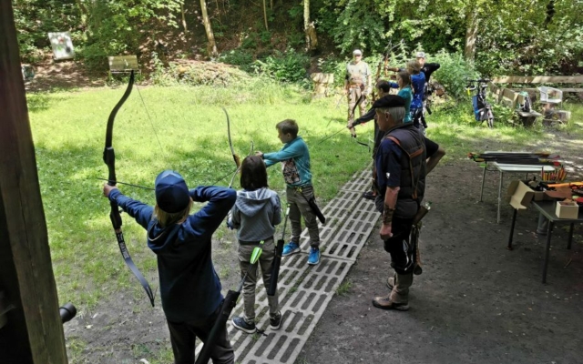 Auch in diesem Sommer hatten wir einige Kinder und Jugendliche zu Gast auf unserem Gelände zur Ferienpassaktion “ Wie Robin Hood durch den Wald streifen“. Einige von ihnen waren schon einmal bei uns und konnten daher gleich loslegen. Mit den anderen haben wir ausgiebig die Techniken des Bogenschießens geübt, bevor wir in den Parkour gegangen sind. Wir hanen uns in kleine Gruppen aufgeteilt und sind über das Gelände gezogen. Nach und nach haben sich die Jugendlichen in der Technik verbessert, so das unsere „Jagt“ immer erfolgreicher wurde.