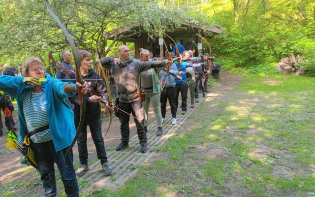 Vor der Gartenhütte gab es dann eine Pause mit Gulaschsuppe und Kuchen. Nach einer ausreichenden Stärkung ging es dann zur Dreipfeil-Runde wieder in den Parcours.
